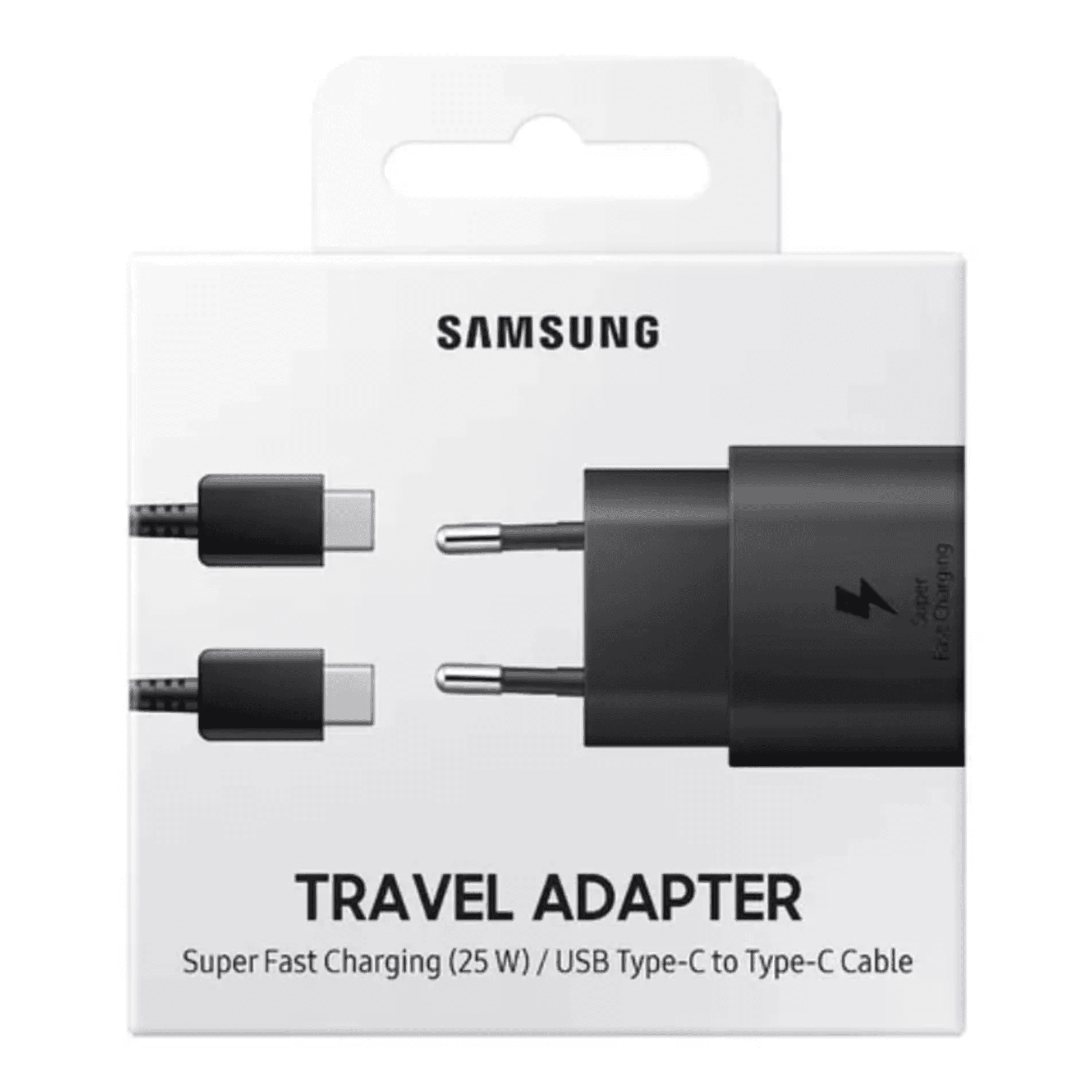 Cargador Samsung de 25W con tecnología Super Fast Charging. Carga tu dispositivo compatible hasta un 50% en solo 30 minutos. Incluye cable USB-C a C de 1 metro. Ideal para smartphones y tablets con entrada USB-C.